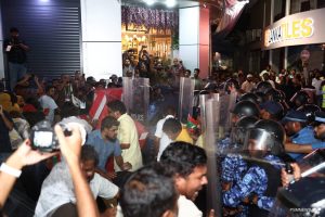ހުކުުރު ދުވަހުގެ ރޭގެ މުޒާހަރާގައި، އެމްޑީޕީން އެއްބަސްވި ގޮތާ ޚިލާފަށް މާލެ ތެރޭގެ އަމަން ނަގާލަން މަސައްކަތްކޮށް ފުލުހުންނާ ދިމާކޮށް ހަދައި، ފުލުހުންގެ ވާޖިބު އަދާކުރުމަށް އުރަސްއަޅާފައިވަނިކޮށް ފުލުހުން ނެރުއްވި ނޫސްބަޔާނުގައި ވިދާޅުވީ، އެމްޑީޕީގެ ފަރާތުން އިންތިޒާމުކޮށްކޮށްގެން މާލޭގައި ބޭއްވި އެއްވުން ކުރިއަށްގެންދިއުމުގައި އެއްވުމުގެ ބައިވެރިން މަގުމައްޗަށް ނިކުމެ އެއްވުން ކުރިއަށް ގެންދިއުމަށް ފުލުހުންނާއެކު ކުރިން މަޝްވަރާކުރެވި އެއްބަސްވެވިފައިވާ ގޮތާ ޚިލާފުވިކަމަށެވެ. އެގޮތުން އެއްވުމުގެ ބައިވެރިން މަޖީދީމަގުން ދިއުމަށް މަސައްކަތްކުރުމުން އެ މަގުން އެއްވުން ކުރިއަށް ނުގެންދެވޭނެކަމަށާއި ކުރިން އެއްބަސްވެވިފައިވާގޮތަށް ކުރިއަށްދިއުމަށް އެއްވުމުގެ ބައިވެރިންނަށް ނަސޭހަތްތެރިވެ އިލްތިމާސް ކުރިނަމަވެސް، އެއްވުމުގެ ބައިވެރިން އެގޮތަށް އަމަލުކޮށްފައިނުވާކަމަށް ފުލުހުން ވިދާޅުވިއެވެ.